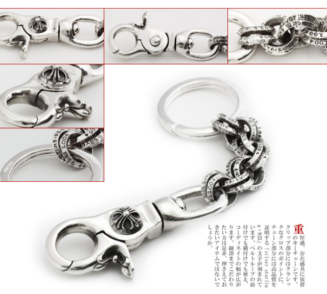 重厚感、存在感共に抜群のキーチェーンです。クリップ部分にはクラシックなクロスのポイントが。ベルトループの前付けでも横付けでも使え、コーディネイトの幅が広がります。チェーンが少し長めの作りなので上着のシャツに隠れず目立ってくれるのでシンプルな服装のワンポイントになってくれるインパクトがうれしいですね!細部までこだわりたい方は是非、押さえておきたいアイテムではないでしょうか。