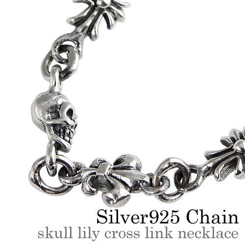 スカル リリー クロス リンク ネックレス シルバー アクセサリー [シルバーチェーン]