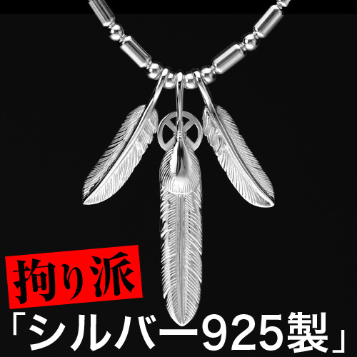 フェザー ネックレス メンズ パイプビーズ ペンダント レザー ネイティブ [シルバーペンダント] [レザー]