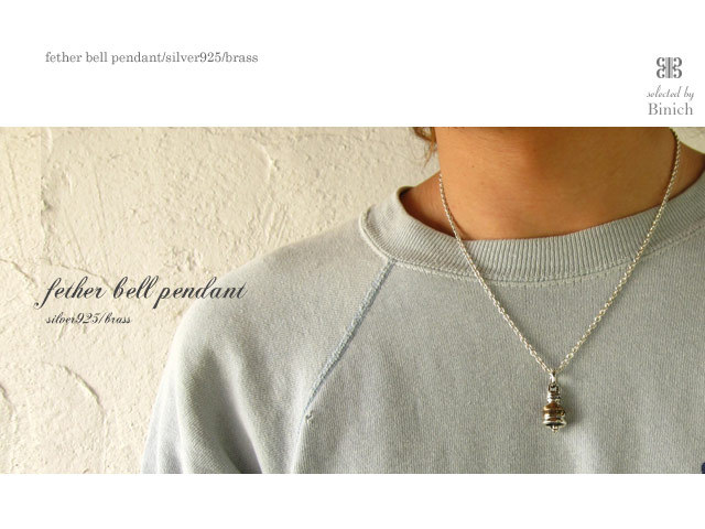 ベルモチーフにブラス(真鍮)素材のフェザーがデザインされた小振りなペンダント。