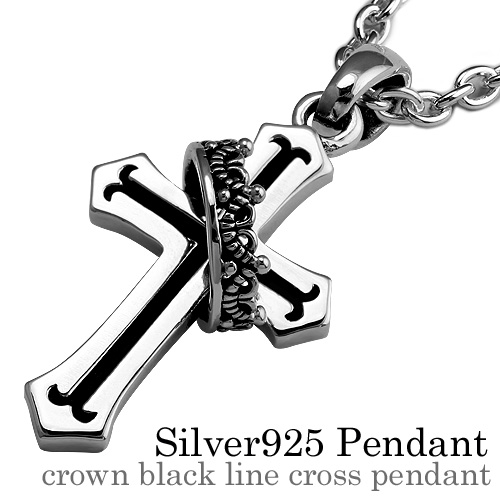 スマートなシルエットのクロスと細やかな装飾を施したクラウンが合わさったペンダントです。 クロスの中央に彫られたブラックのラインが男性らしい力強さを演出します。 シンプルさと上品さを兼ね備えた大人のアクセサリーと言えます。