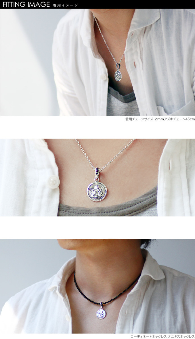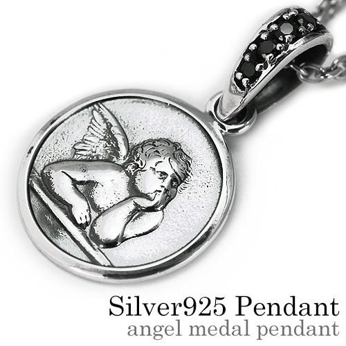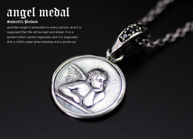 ラファエロ作【システィーナの聖母(マリア)】に描かれている天使が彫られたメダルペンダント。 バチカンにもこだわり、キュービックジルコニアを4つ並べることでペンダントに輝きと重量感をプラスしてくれます。 シルバーのチェーンはもちろん、ストーンネックレスと合わせるのもかっこいいのでオススメ!