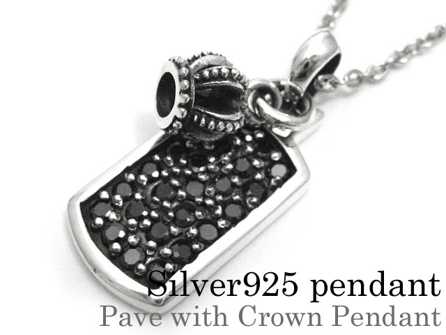 ブラックパヴェウィズ クラウン ペンダント ≪2mmアズキチェーン≫ メンズ ネックレス シルバー アクセサリー [シルバーペンダント]
