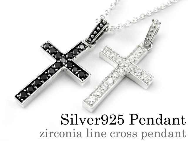 ジルコニア ライン クロス ペンダント ≪2mmアズキチェーン≫ メンズ ネックレス シルバー アクセサリー [シルバーペンダント]