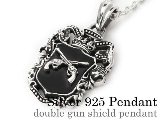 ダブルガンシールド ペンダント ≪トップのみ≫ メンズ ネックレス シルバー アクセサリー [シルバーペンダント]