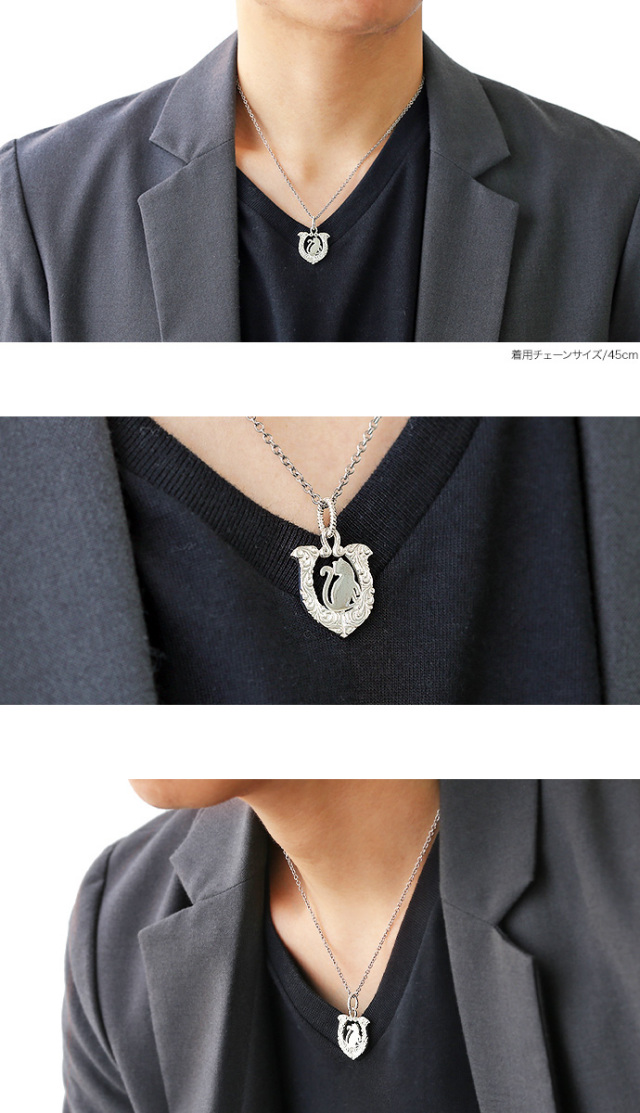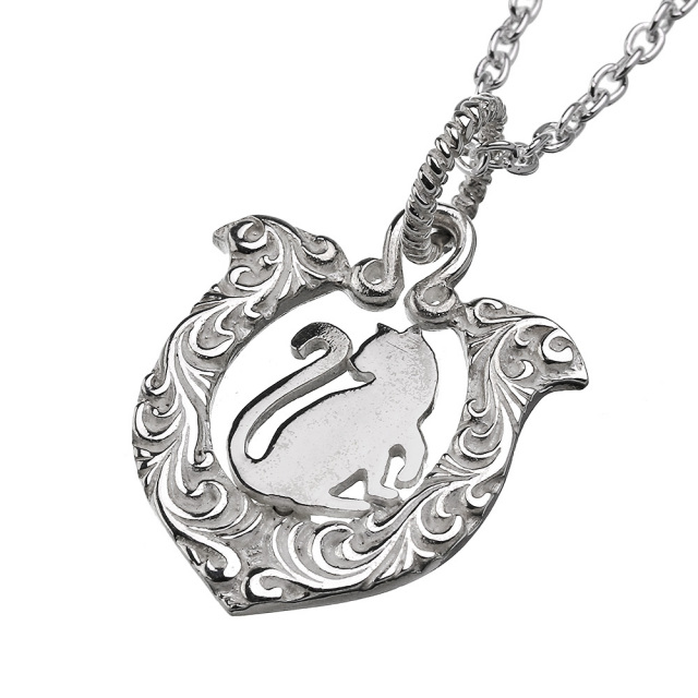キャット ホースシュー ペンダント ≪トップのみ≫ メンズ ネックレス シルバー アクセサリー 猫 馬蹄 [シルバーペンダント]