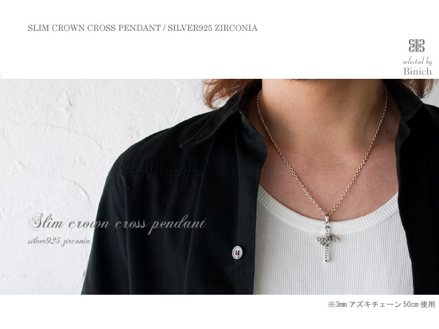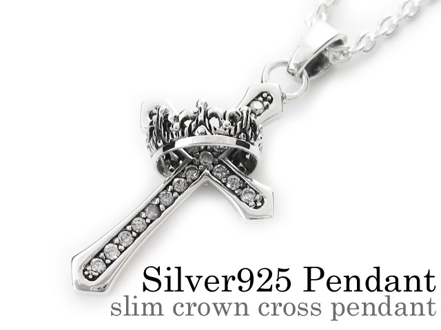 スリム クラウン クロス ペンダント シルバー ≪3mmアズキチェーン≫ [シルバーペンダント]