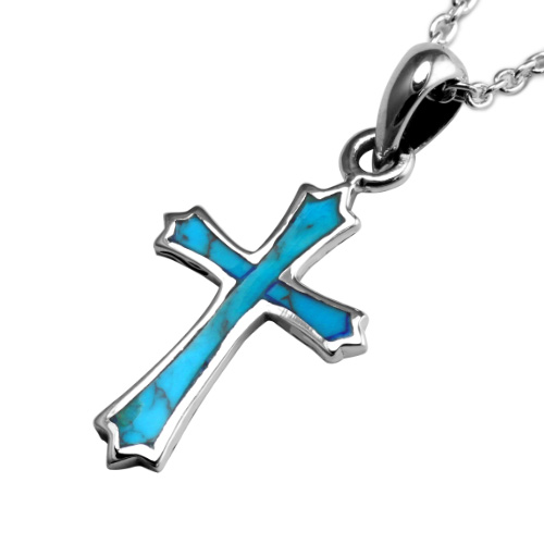 清涼感漂うターコイズがクロスの前面に埋め込まれており、胸元を鮮やかにする存在感抜群のアクセサリーです。 ラフな格好のカジュアルコーデでも、男女問わずお使いいただけるシンプルなデザインのクロスです。