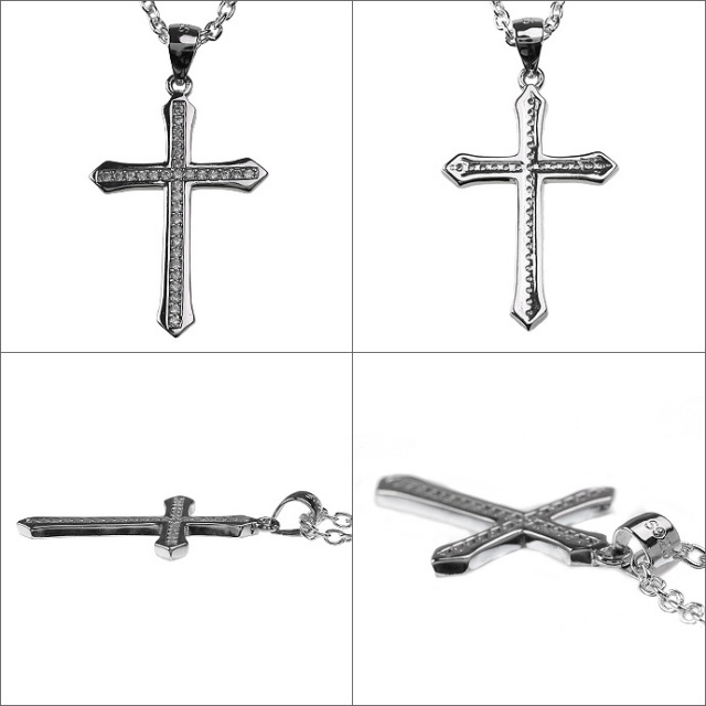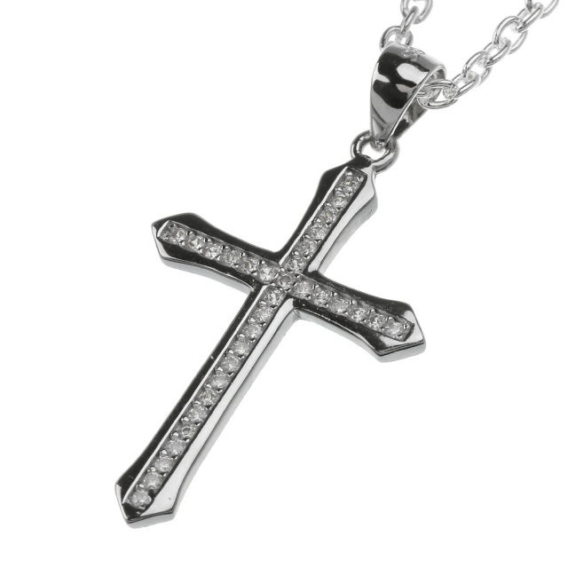 クロス 十字架 ジルコニア ペンダント ≪トップのみ≫ メンズ ネックレス シルバー アクセサリー [シルバーペンダント]