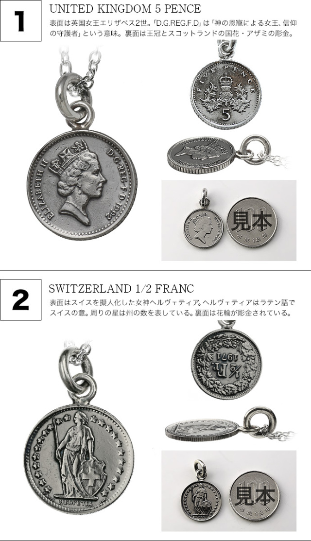 実際に使われていた本物のアンティークコインを使用したペンダント。