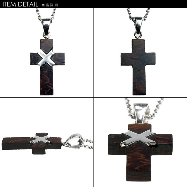 定番モチーフのクロスとウッドを組み合わせたペンダントです。