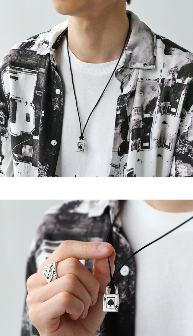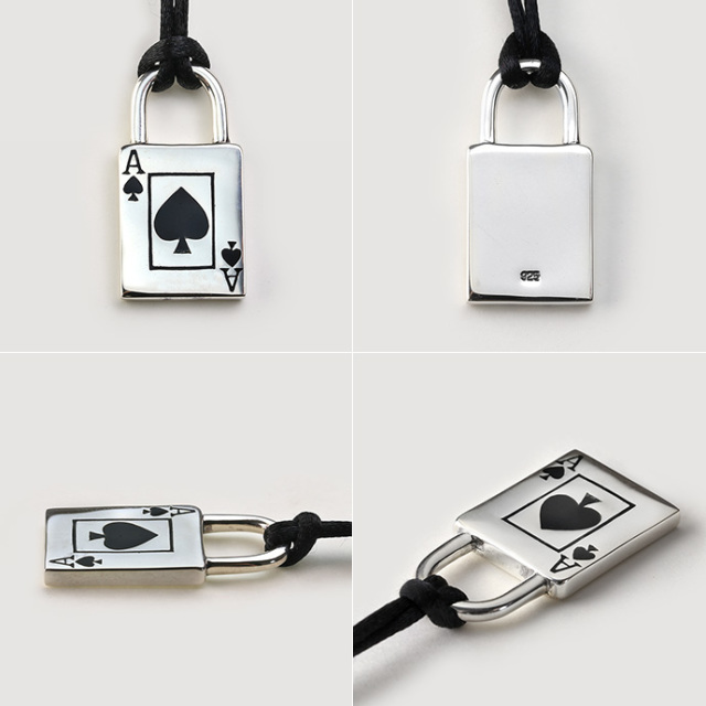トランプ パッドロック ペンダント コード付き 鍵 メンズ ネックレス シルバー アクセサリー [シルバーペンダント]