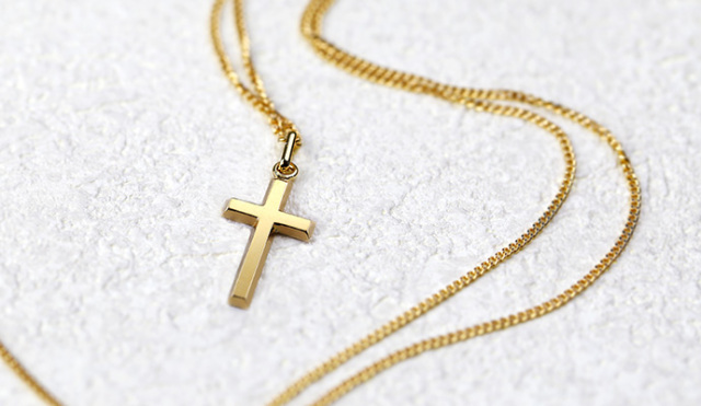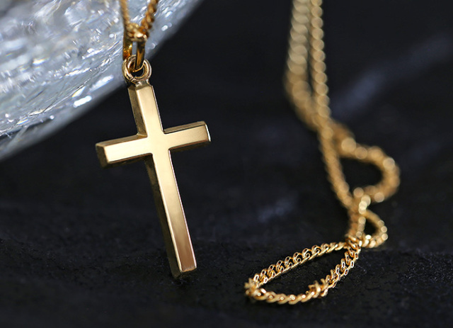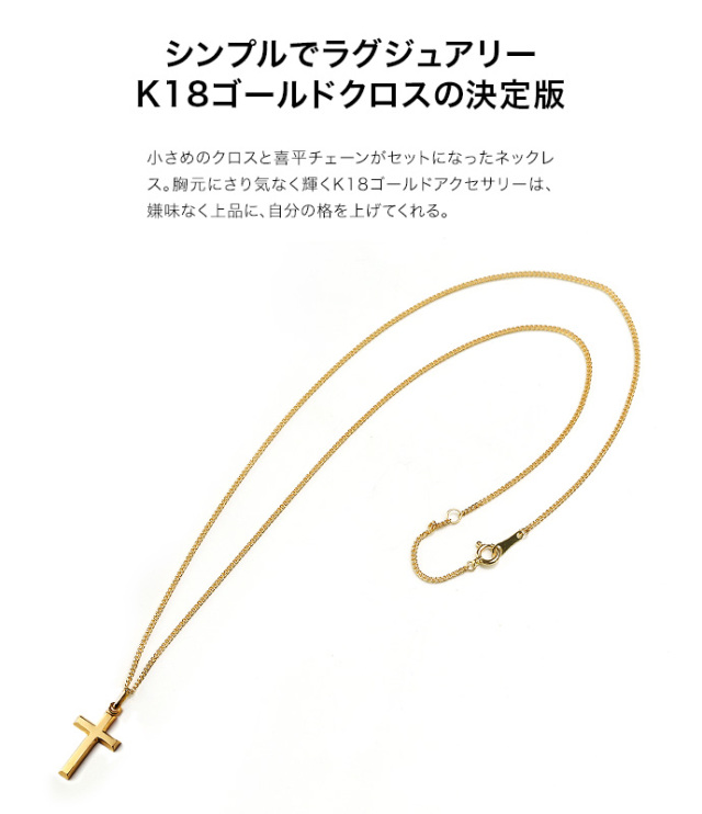 高級素材・K18ゴールド製のクロスと喜平チェーンがセットになったネックレス。