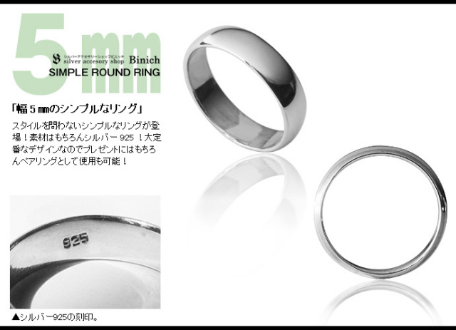 【有料刻印可能】【5mm幅】シンプル甲丸 リング シルバー ペア リング にもお薦め 指輪 [シルバーリング]