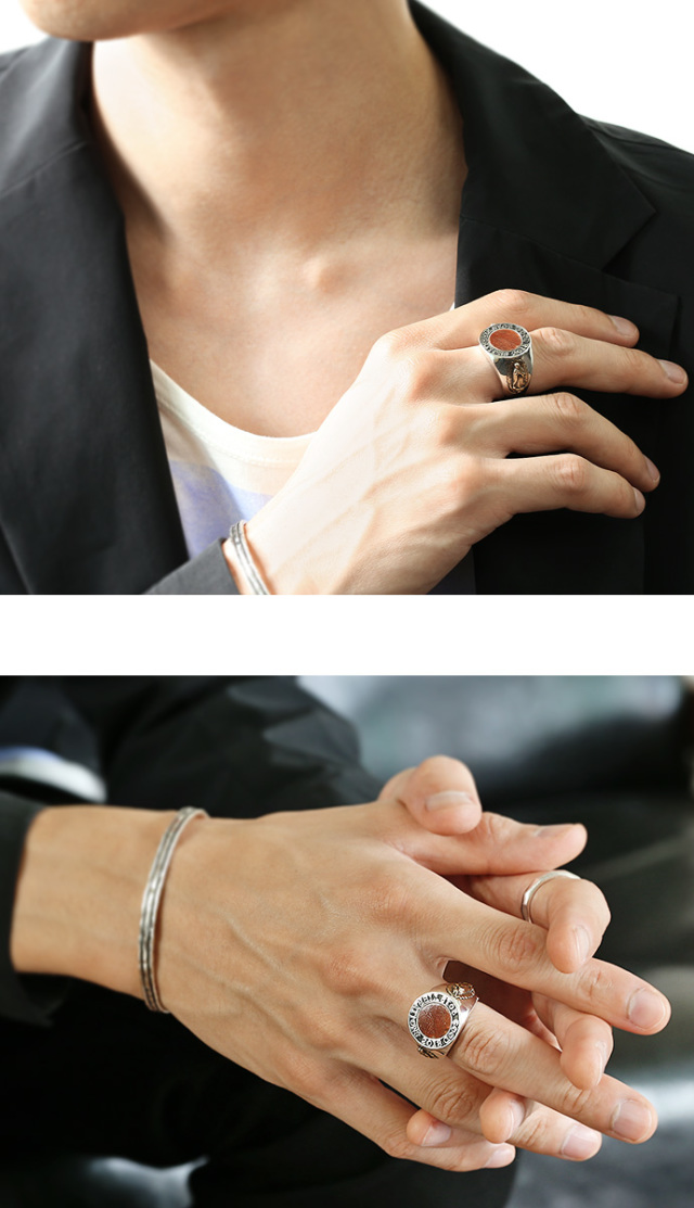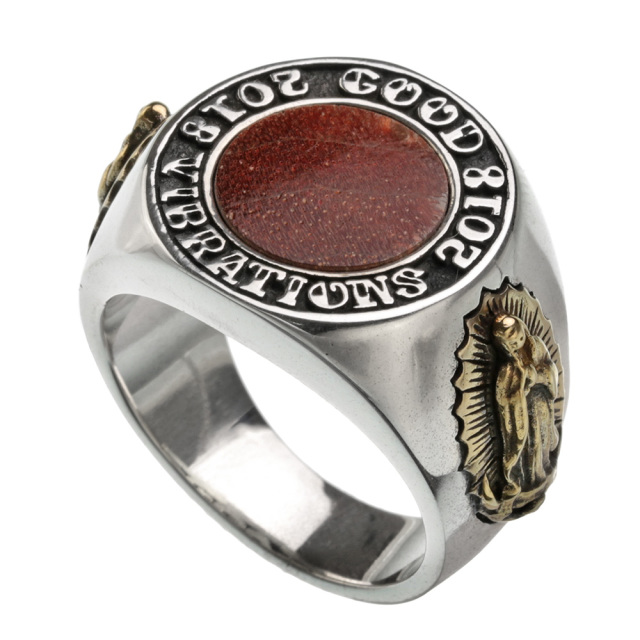 ラウンド ウッド マリアメダイ カレッジリング 印台 シルバー アクセサリー リング 指輪 [シルバーリング]