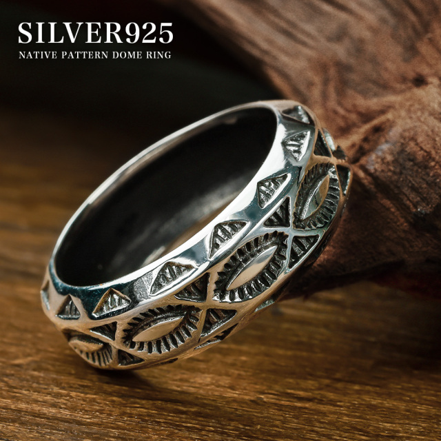 ネイティブ パターン ドーム リング メンズ 指輪 シルバー925 アクセサリー ネイティブ系 [シルバーリング]