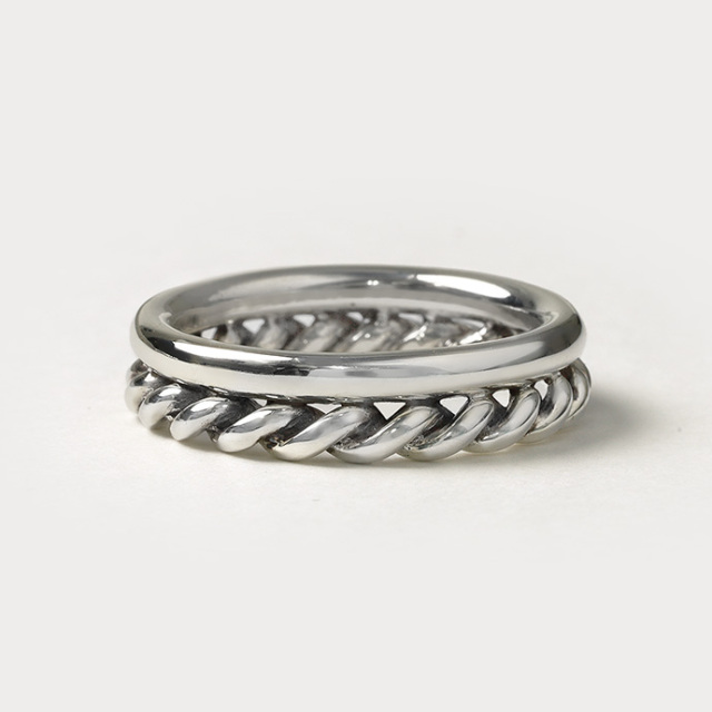 ロープ & ラウンド レイヤード リング シルバー アクセサリー 指輪 ねじり シンプル 925 [シルバーリング]
