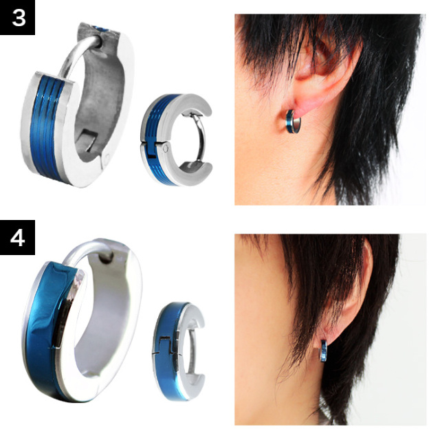 【4】センターブルーラインフープピアス