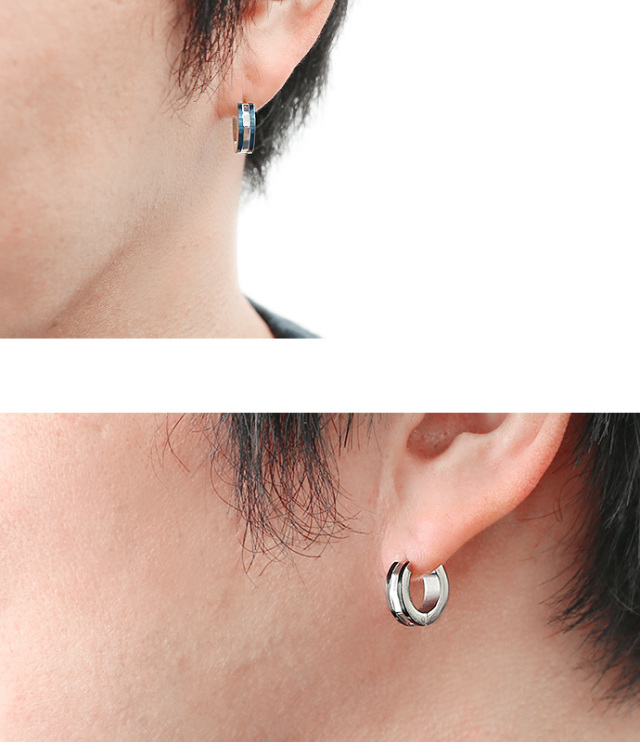 ナットのようにカッティングされたラインが珍しい、ステンレス製ピアス。