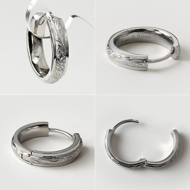 ハワイアンアクセらしい細かな彫金を中心に、横にフラットなラインをデザインすることで全体の印象を引き締めています。上品な雰囲気ながら、耳元でしっかり存在を主張する大きめなサイズ感。男性はもちろん女性にもお使いいただけるピアスです。