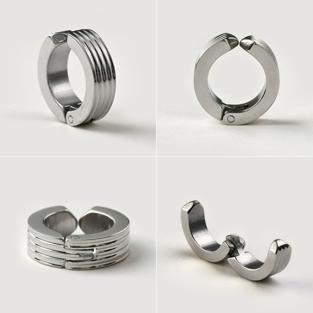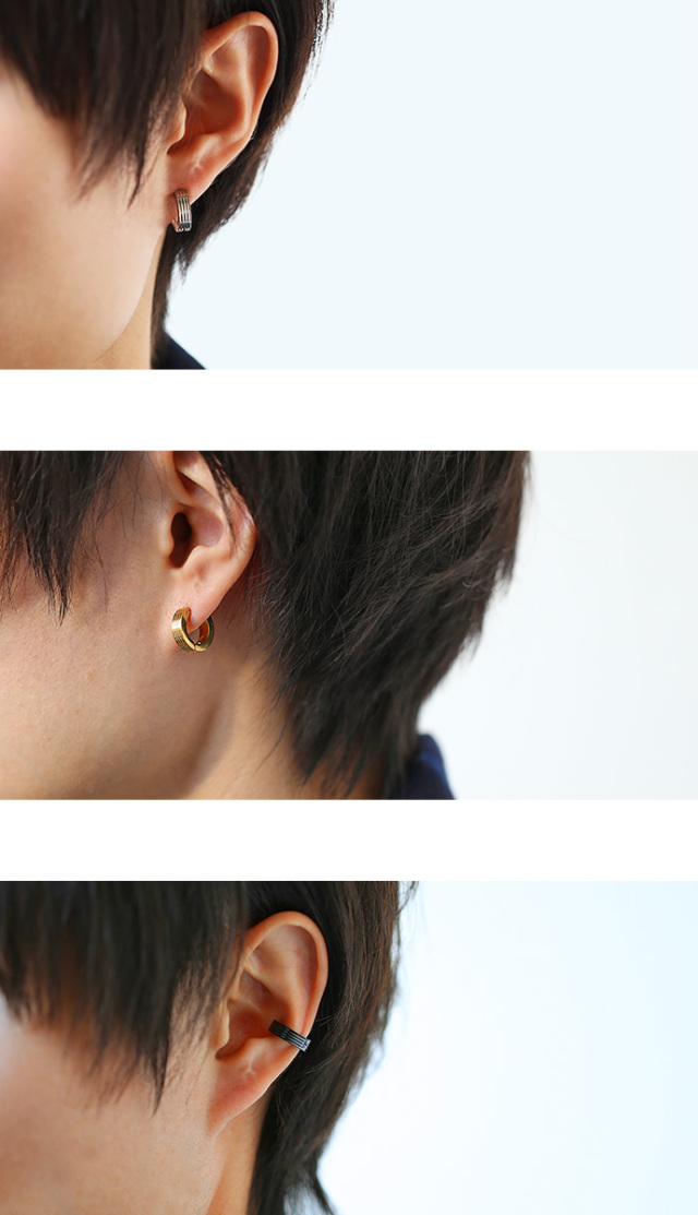 フォー ライン フェイクピアス メンズ イヤーカフ シンプル イヤリング 男性 [ステンレスピアス] 片耳用(1個売り)