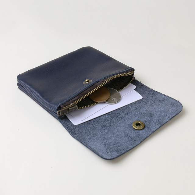 少しのカードとお金だけ持ちたい…キャッシュレスな時代に選びたい、シンプルなデザインと使い勝手の良さが魅力のミニ財布です。高級感のあるしなやかな本革を使用、一面にシボ(凹凸のシワ模様)があるためキズが目立たず滑りにくくなっています。コインポケットとフリーポケットが1つずつあり、コインポケットはジッパー付きで持ち運びも安心です。男性の手のひらほどのサイズ感でウエストバッグやショルダーバッグにも相性抜群です。ポーチとしてのご利用もオススメです。