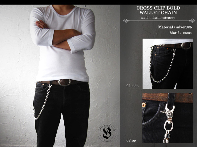 クロス クリップボールド ウォレットチェーン シルバー アクセサリー [シルバーウォレットチェーン]