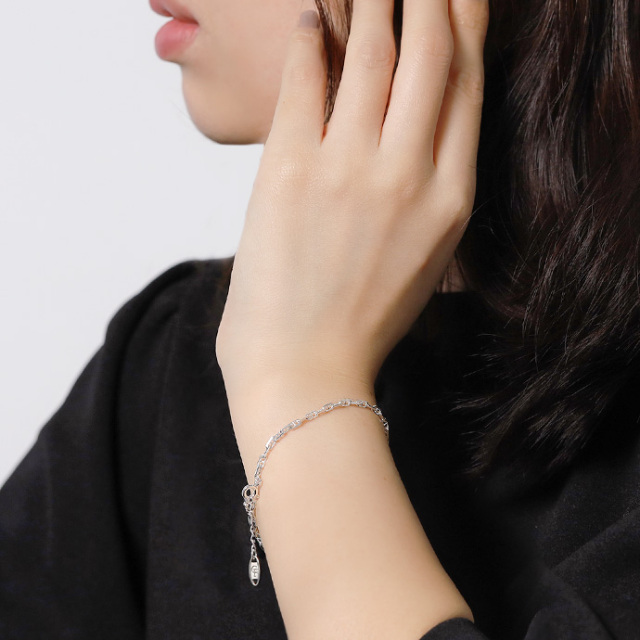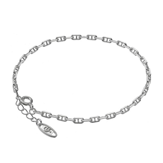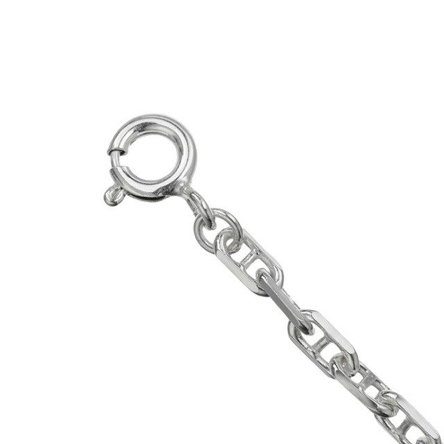 様々なスタイルに合う、ロロマリーナチェーンのシルバーブレスレット。さらりと着けやすい2.5mm幅タイプです。ロロマリーナチェーンはカッティングとコマ中央の棒が特徴のデザイン性の高いチェーン。繊細な輝きが魅力のシルバー925製チェーンに、ブランドロゴ入りチャームがアクセントになり高級感を演出します。アジャスターで長さ調整ができ男性も女性もお着け頂けるので、ペアでの着用やプレゼントにも最適です。無駄を省いた洗練されたデザインが高級感のある手元に仕上げてくれます。