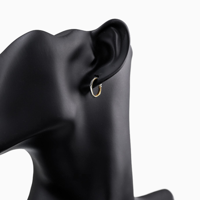 「揺らぎ」を表現したピアス。光を美しく反射する特徴的なカッティングは、表面だけでなく側面にまでデザインされています。耳に直接当たるゴールド部分にはアレルギーが出にくいと言われるK10ゴールドを使用。内側から側面にかけて施されたゴールドコーティングが目を惹く逸品です。
