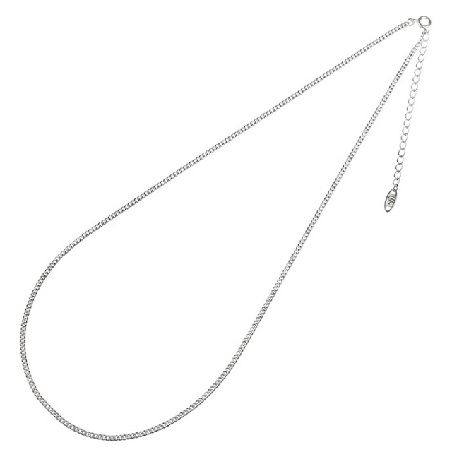 様々なスタイルに合う、シンプルなチェーンネックレス。平らな面がなめらかで存在感のある輝きを放つ、定番人気の喜平チェーンを使用しています。細め幅のチェーンがさりげなく上品に胸元を飾ります。ブランドロゴ入りチャームが背面にも高級感を演出します。FLUIブランドのペンダントを通してもご使用いただけます。